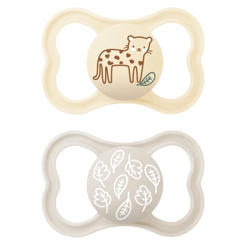 A MAM SkinSoft szilikon szívóka különleges puhaságot nyújt, amely a bőrhöz hasonló érzetet biztosít – a babák 94%-a elfogadja (piackutatás 2010–2018; 1383 babával tesztelve). A szimmetrikus kialakításnak köszönhetően a cumi mindig helyesen illeszkedik a baba szájába, míg a hajlított pajzs és a praktikus fogógomb a kényelmet és a könnyű kezelhetőséget szolgálják.