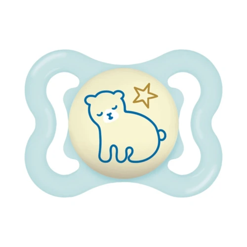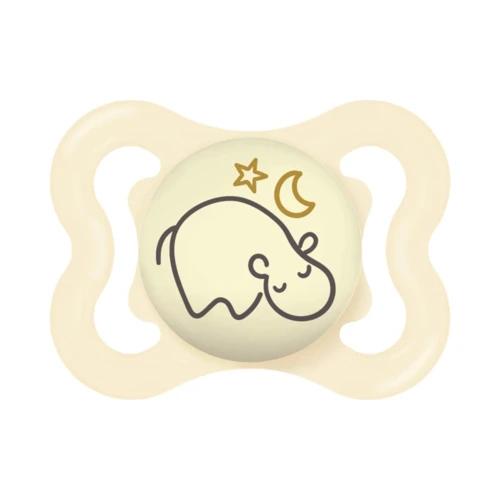 Az extra vékony és rugalmas szívóka lehetővé teszi a babák számára a természetes, zárt szájtartást, ami hozzájárul a fogak egészséges növekedéséhez. Az extra nagy szellőzőnyílásokkal ellátott pajzs kíméli a baba érzékeny bőrét, így megelőzhető a kipirosodás és az irritáció. A cumi sötétben világító gombbal rendelkezik, amely segít a szülőknek és a babáknak, hogy éjszaka is könnyen megtalálják.