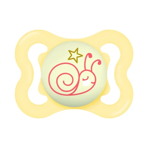 Az extra vékony és rugalmas szívóka lehetővé teszi a természetes, zárt szájtartást, amely elegendő helyet hagy a fogak normál növekedéséhez. A cumi sötétben világító gombja segít a szülőknek és a babáknak, hogy éjszaka is könnyedén megtalálják. A nagy szellőzőnyílásokkal ellátott pajzs különösen bőrbarát, mivel kíméli a baba érzékeny arcbőrét, megelőzve a kipirosodást és az irritációt.