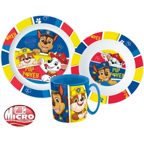 Mancs Őrjárat Pup Power étkészlet, micro műanyag szett bögrével 350 ml