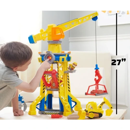 - A nagy daru forgó karral és markolóval lehetővé teszi a gyerekeknek, hogy tárgyakat emeljenek és mozgassanak