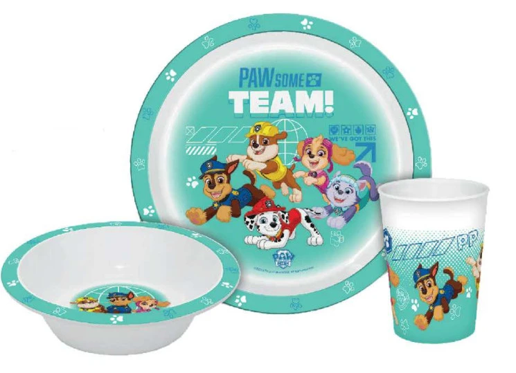 Paw Patrol, Mancs Őrjárat Team étkészlet, micro műanyag szett Dobozban