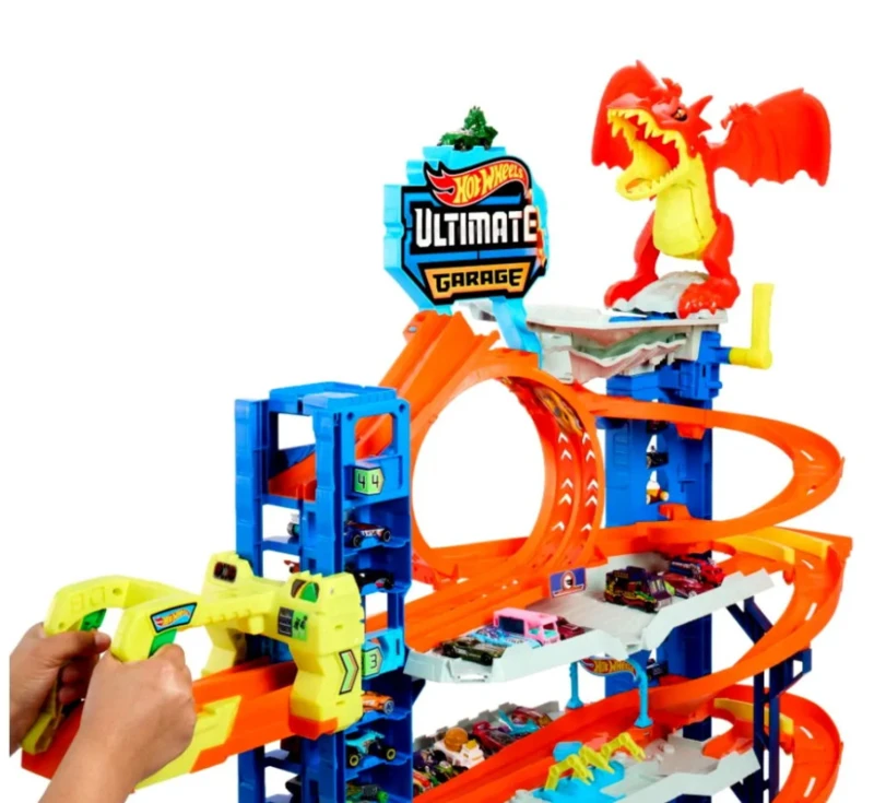 Fedezzétek fel a Hot Wheels City Ultimate Garázs minden szintjét, amely versenyzésre, mutatványokra és mesélésre ösztönzi majd a gyerekeket. Minden szint inspiráló pályajáték-kalandokat kínál, beleértve az egymás melletti versenyzést, hurokmutatványokat és egy félelmetes autóevő sárkánnyal vívott epikus csatát.