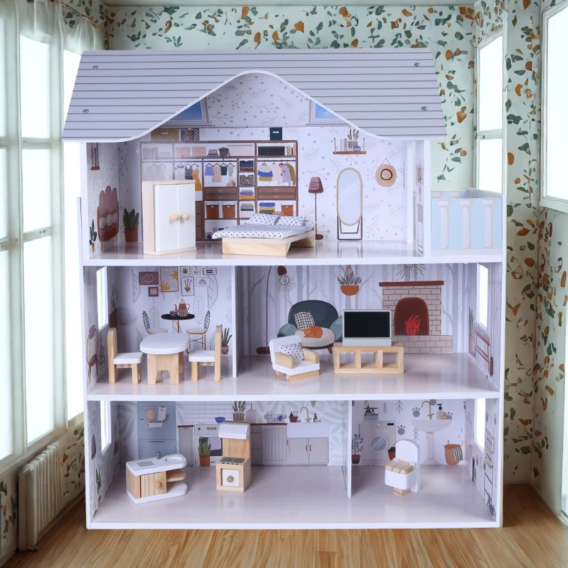 A bútorok aprólékosan kidolgozott részletei életre keltik a játékot, a ház pedig strapabíró rétegelt lemezből készült, hogy hosszú ideig bírja a mindennapi használatot. A szerepjáték fejleszti a gyerekek kreativitását, szociális készségeit és finommotorikáját, miközben fantasztikus szórakozást nyújt.