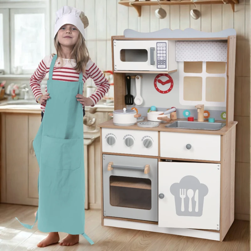 - Teljes Konyhai Felszerelés: A készlet tartalmazza a szükséges konyhai eszközöket, például sütőt, mosogatót és tárolóhelyeket, amelyek élethű játékélményt biztosítanak.