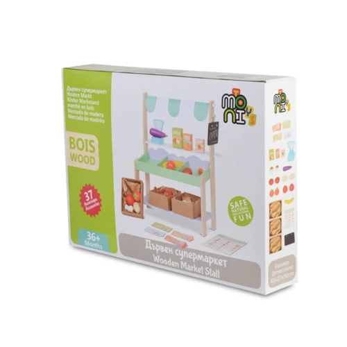A Moni Fa Szupermarket interaktív, fa játékbolt, amely valósághű vásárlási élményt nyújt. Pénztárgéppel, polcokkal és termékekkel fejleszti a kreativitást, a számolási készséget és a szerepjátékot.