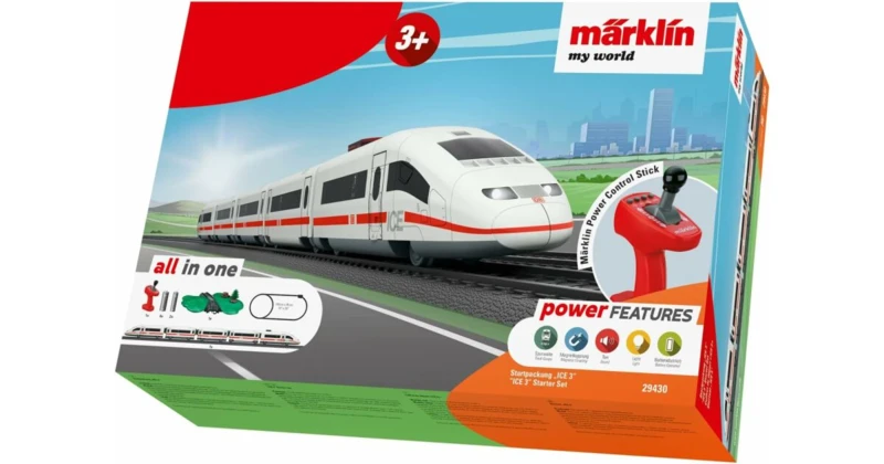 A Märklin My World ICE nagysebességű elektromos vonat kezdőkészlet egy 63 cm hosszú, távirányítható vasútjáték, amely izgalmas és interaktív élményt nyújt gyerekeknek már kis kortól. Ideális választás vasút és jármű rajongó kisgyermekeknek, akik örömmel fedezik fel a gyorsvonatok világát.