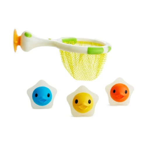 Három kedves, lebegő csillag és egy tapadókorongos hálós kosár feldobja az időt a fürdőben! Fénynek kitéve a csillagok és a csillaggyûrû fluoreszkál. A kicsi ezt a fényt használhatja a lebegő csillagok hálózására, vagy fürdés közben kosárlabdázhat úgy, hogy egyszerûen a falhoz tapasztja a botot!