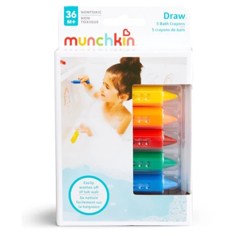 A Munchkin kádkréta fürdőjáték színes, biztonságos krétákkal teszi kreatívvá a fürdést, amelyek könnyen lemoshatók a csempéről és a kád faláról.