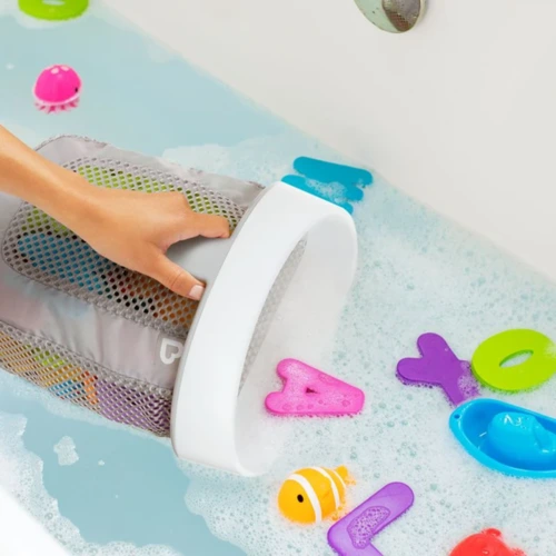 A Munchkin Super Scoop fürdőjáték tárolóval pillanatok alatt rendet tehetsz a kádban – nagy kapacitású, hálós kialakítású, gyors száradást biztosít és megakadályozza a penészesedést.