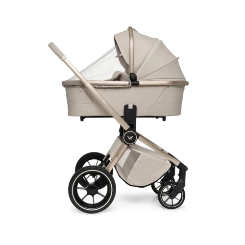 A tágas mózeskosár több ablakkal biztosítja a megfelelő szellőzést melegebb időben is. A hozzá tartozó UPF50+ vízálló kupola és cipzáras napellenző hatékony védelmet nyújt minden időjárási körülmény között. A Memory Buttons rendszernek köszönhetően a mózeskosár könnyedén rögzíthető a vázra, valamint a mellékelt magassági adapterek segítségével megemelhető, ami különösen kényelmes a magasabb szülők számára.