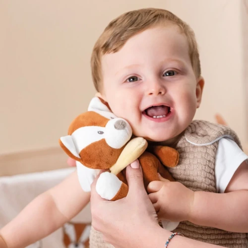Az aranyos csörgő tökéletes játszótárs babája minden kalandjához. Sok megragadható részletet kínál, és optimálisan formázható a kis kezek és ujjak számára. Szórakoztató tevékenységekhez és extra élvezethez – a csörgő rázásakor vagy összenyomásakor vicces koppintó hangok hallhatók.