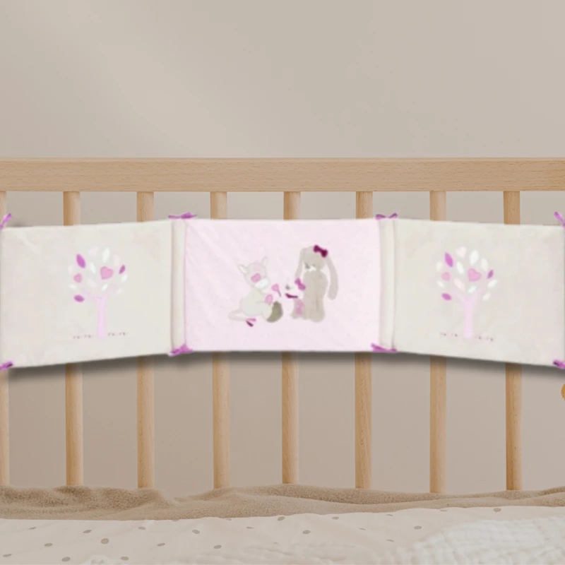 A gyönyörû hímzéssel diszített plüss fejvédő megakadályozza, hogy a baba megüsse magát az ágy szélébe, és kényelmes alvási környezetet teremt.