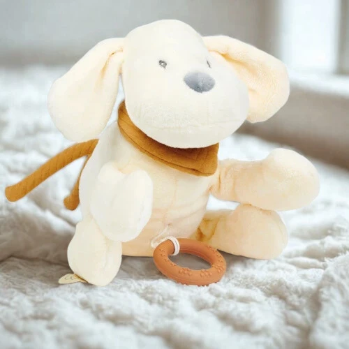 Az aranyos bújós Charlie kutyus csinos bundájával világszerte meghódítja az újszülöttek szívét. Az imádnivaló kutya számtalan megfogási lehetőséget kínál – beleértve a füleket, a mancsokat, a farkat vagy a tartós szilikongyûrût –, ezáltal elősegíti a tapintásérzék és a motorikus készségek fejlődését. A játékban lévő zenélő egység gyengéd dallamaival a szükséges megnyugvást is megadja gyermekének. A hátul lévő két zsinórral a bújós játékot a kiságyhoz vagy a babakocsihoz is könnyedén fel lehet kötni.