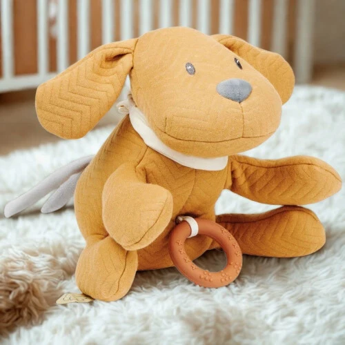 Az aranyos bújós Charlie kutyus csinos bundájával világszerte meghódítja az újszülöttek szívét. Az imádnivaló kutya számtalan megfogási lehetőséget kínál – beleértve a füleket, a mancsokat, a farkat vagy a tartós szilikongyûrût –, ezáltal elősegíti a tapintásérzék és a motorikus készségek fejlődését. A játékban lévő zenélő egység gyengéd dallamaival a szükséges megnyugvást is megadja gyermekének. A hátul lévő két zsinórral a bújós játékot a kiságyhoz vagy a babakocsihoz is könnyedén fel lehet kötni.