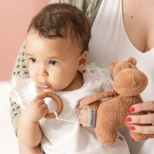 - kényelmes zsinórokkal felszerelve a kiságyhoz, babaüléshez vagy babakocsihoz való rögzítéshez