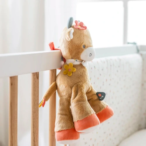 - kényelmes zsinórokkal felszerelve a kiságyhoz, babaüléshez vagy babakocsihoz való rögzítéshez
