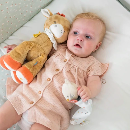 Ez a puha társ tökéletes az ölelkezéshez és a felfedezéshez, így ideális kiegészítője a baba játékainak.