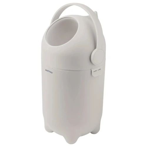 Könnyen kezelhető, akár egy kézzel is. A fogantyú felemelésével a pelenkát kidobjuk a kukába, majd leengedjük a fogantyút, hogy a pelenka a zacskóba essen.