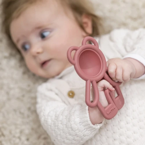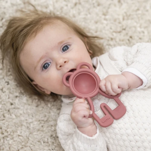 A puha BPA-mentes szilikonból készült Pop-it rágóka órákon át szórakoztatja babáját. Ez a kis kezekre méretezett oktatójáték arra ösztönzi a babát, hogy megnyomja a buborékot, és fejleszti a finommotorikát. A buborék hangja és a különböző textúrájú felület a forma tapintására, megnyomására hív. Ezenkívül a Pop-it megkönnyebbülést nyújt, amikor kijönnek a baba első fogai.