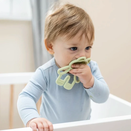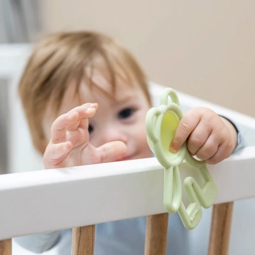 A puha BPA-mentes szilikonból készült Pop-it rágóka órákon át szórakoztatja babáját. Ez a kis kezekre méretezett oktatójáték arra ösztönzi a babát, hogy megnyomja a buborékot, és fejleszti a finommotorikát. A buborék hangja és a különböző textúrájú felület a forma tapintására, megnyomására hív. Ezenkívül a Pop-it megkönnyebbülést nyújt, amikor kijönnek a baba első fogai.
