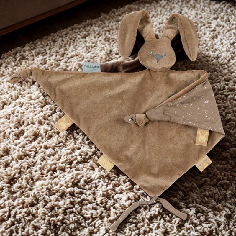 Nattou Lapidou Maxi foszforeszkáló szundikendő – Nyúl copper: puha, világító plüss kendő újszülötteknek és koraszülötteknek. Megnyugtató, biztonságos, 30°C-on mosható.