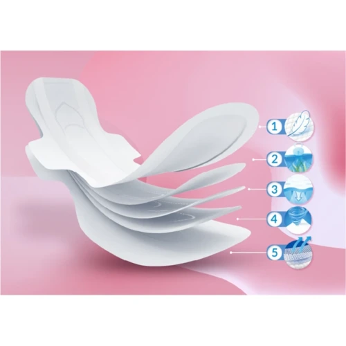 Minden rétegnek megvan a saját célja. A puha, bőrkímélő nem szőtt anyagtól kezdve a magas felszívóképességû magon át a légáteresztő hálós felületig, amely elősegíti a megfelelő légáramlást.