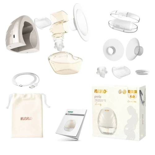 A Neno Perla egy innovatív vezeték nélküli, kéz nélküli mellszívó, amely lehetővé teszi, hogy más dolgokat végezz miközben tejet fejsz. Könnyû és kis méretû háza egyszerûen illeszkedik a szoptatós melltartóba, így az anyuka kezei teljesen szabadon maradnak. A mellszívó három fázison alapul, és 9 szintû beállítást kínál. Anatomikus, mellformájú mellszívó pajzsa 105 fokban nyílik, és két szûkítővel rendelkezik, amelyek lehetővé teszik a pajzs méretének csökkentését 19 mm-es és 22 mm-es méretre.