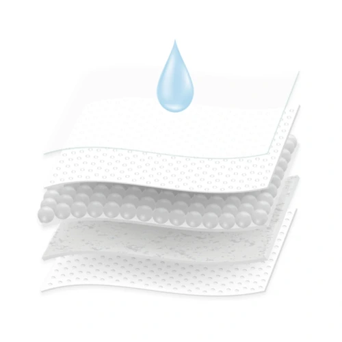Hogyan szív fel egy ultravékony betét nagy mennyiségû folyadékot? Kiváló nedvszívó képességének titka a Japánban készült szuperabszorbeáló polimerekből álló rétegben rejlik.