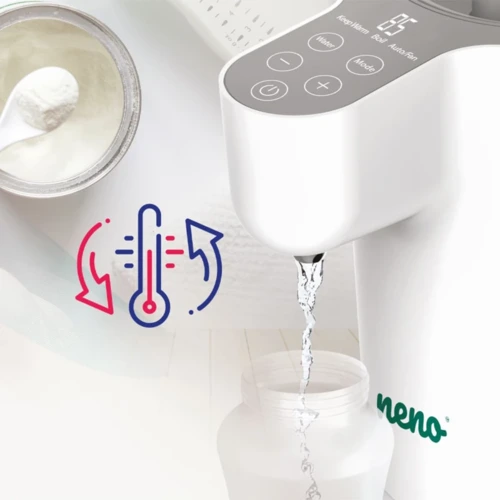 A Neno Aqua vízgép egy multifunkciós készülék, amely megkönnyíti a kisgyermekes szülők mindennapjait. Nemcsak melegíti, hűti és forralja a vizet, hanem képes a kiválasztott hőmérsékletet hosszabb ideig megtartani is, így mindig gyorsan elkészítheted a tápszert, teát vagy akár más italokat.