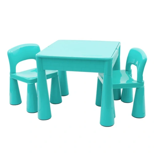 Gyerek készlet New Baby, egy asztalt és két széket tartalmaz. Az asztal nagyon praktikus, a felső deszka elfordításával egy tökéletes helyet kap a Lego Klasik vagy Lego Duplo építőkockák építésére. A felső deszka alatt tárolóhely található a játékok, rajzkészletek stb. tárolására. Ha eltávolítja a felső deszkát, helyet kap, ahová egy kis vizet önthet, így a gyermeke élvezheti a kedvenc vízi játékokat is, vagy használható homokozóként is.