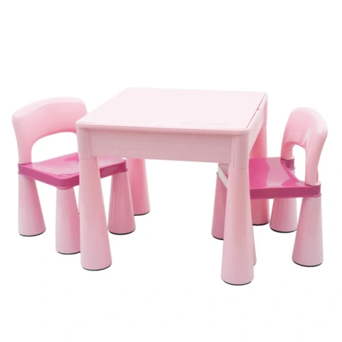 Gyerek készlet New Baby, egy asztalt és két széket tartalmaz. Az asztal nagyon praktikus, a felső deszka elfordításával egy tökéletes helyet kap a Lego Klasik vagy Lego Duplo építőkockák építésére. A felső deszka alatt tárolóhely található a játékok, rajzkészletek stb. tárolására. Ha eltávolítja a felső deszkát, helyet kap, ahová egy kis vizet önthet, így a gyermeke élvezheti a kedvenc vízi játékokat is, vagy használható homokozóként is.