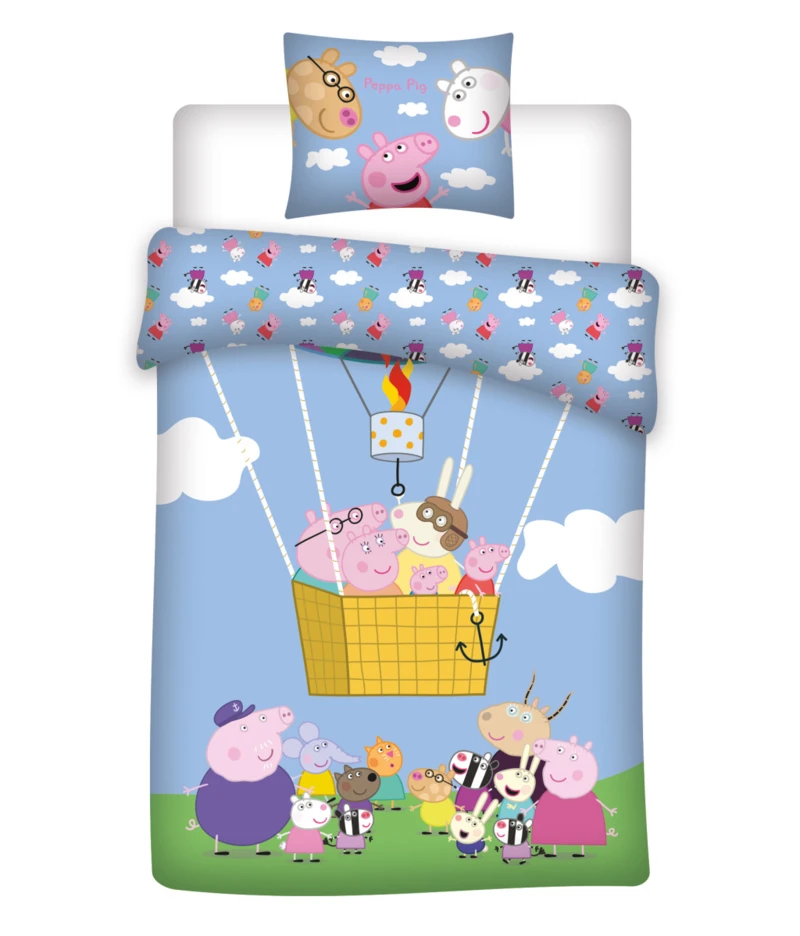Peppa malac Hot Air Balloon gyerek, ovis ágyneműhuzat 100×140cm, 40×45 cm