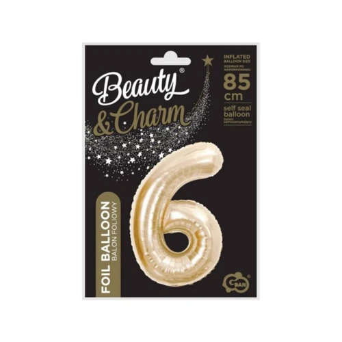Pezsgőszínű 6-os szám fólia lufi 85 cm