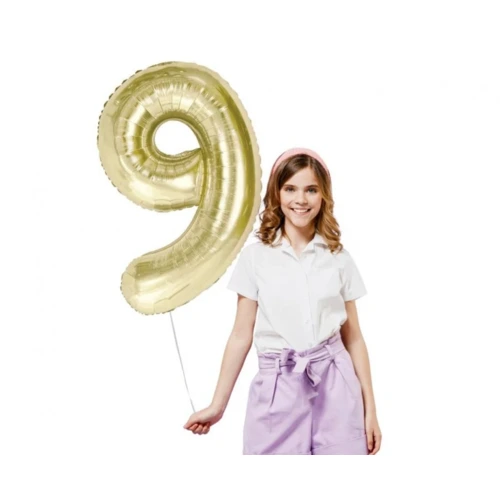 Pezsgőszínű 9-es szám fólia lufi 85 cm