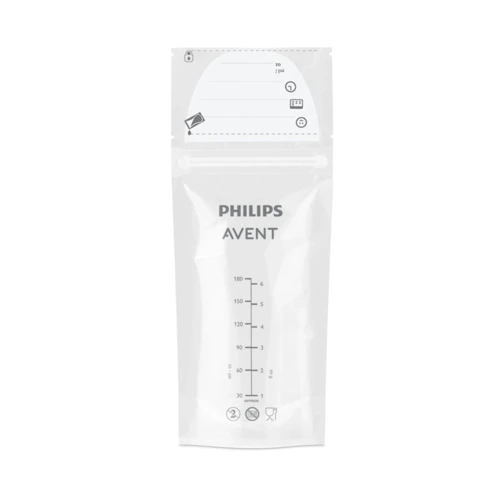 Az anyatej maximális védelme 180 ml-es anyatejtároló tasakok A Philips AVENT anyatejtároló tasakok az értékes anyatej biztonságos tárolását teszik lehetővé. Hûtőszekrényben, illetve fagyasztóban is tárolhatók, és az azonnali használat érdekében elősterilizáltak.A következőt tartalmazza: