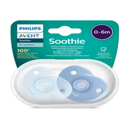 Rugalmas orvosi szilikon A Philips Avent Soothie a baba arcának természetes vonalait figyelembe véve lett kialakítva. Az ívelt, szív alakú maszk nem nyomja a pici orrát. Az orvosi szilikonból készült Soothie egész Európában elérhető a kórházakban*