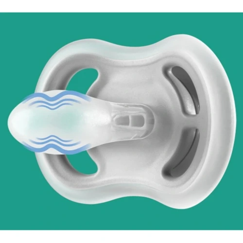 Az összeharapható szilikon cumink szimmetrikus alakkal rendelkezik, amely nem zavarja a baba szájpadlásának fogainak és ínyének fejlődését.