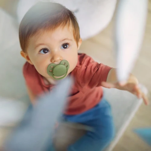 A lekerekített cumipajzsunk minimalizálja a nyomást, így gyengéd a gyermeke arcához, és kényelmes megnyugtatást biztosít.