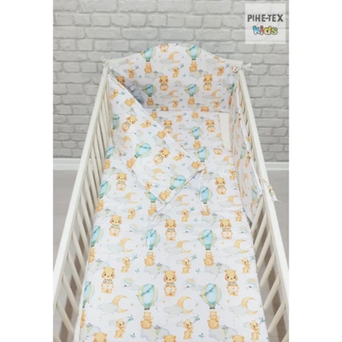 A Pihe-Tex ágynemû bőrbarát, légáteresztő anyagának köszönhetően egyenletes hőmérsékletet biztosít, hozzájárulva ezzel kisbabád nyugodt álmához. A párnában és a paplanban lévő 2 cm vastag poliészter töltet antiallergén.