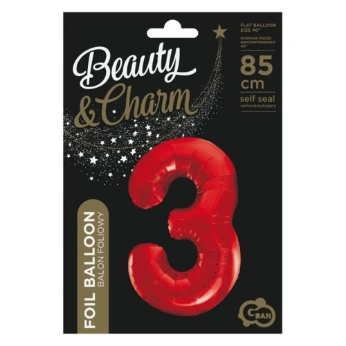 Piros 3-as szám fólia lufi 85 cm