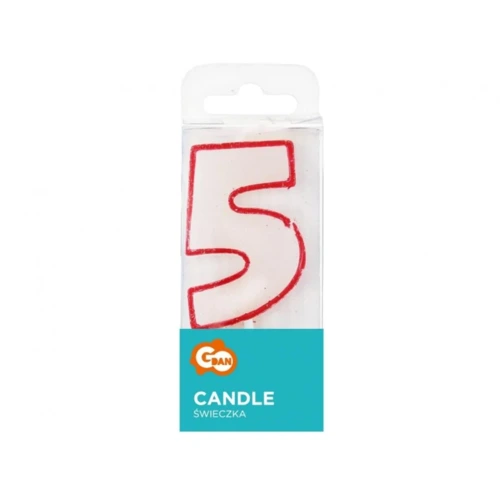 Red Outline Glitter, Piros 5-ös számgyertya, tortagyertya
