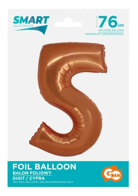 Réz 5-ös szám fólia lufi 76 cm