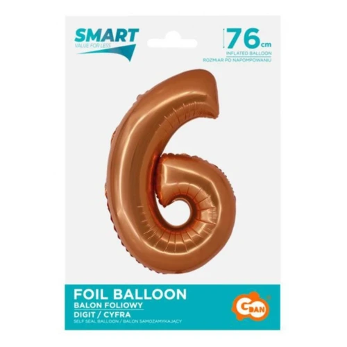 Réz 6-os szám fólia lufi 76 cm