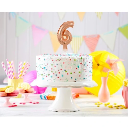 Rose Gold 6-os szám fólia lufi tortára 13 cm