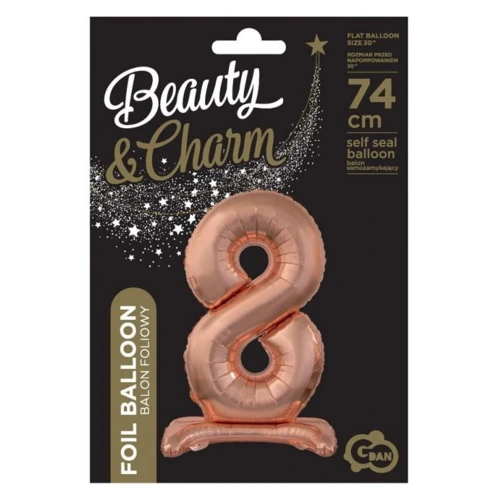 Rose Gold 8-as szám fólia lufi talppal 74 cm