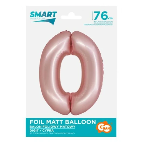 Rózsaszín 0-ás Light Pink Mat szám fólia lufi 76 cm