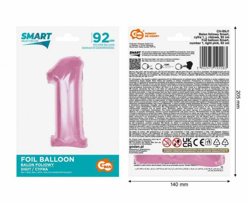 Rózsaszín 1-es Light Pink szám fólia lufi 92 cm