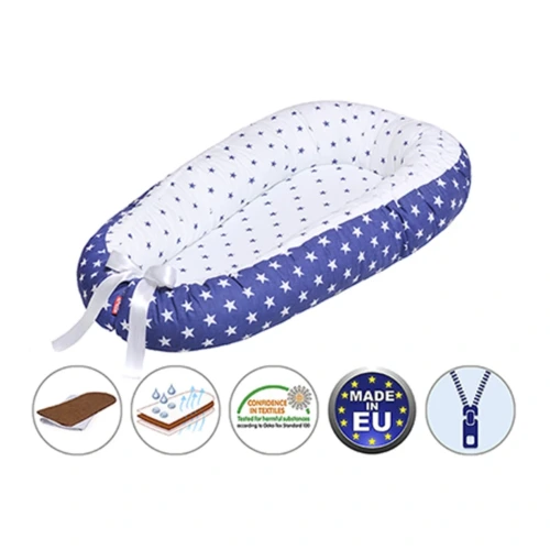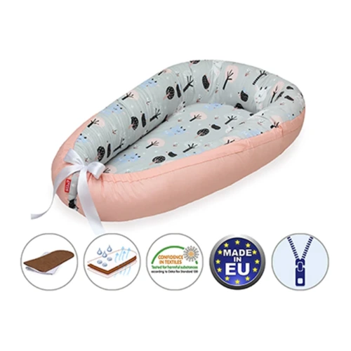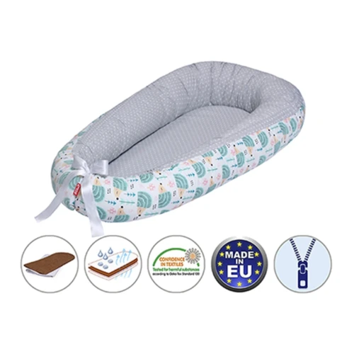 - Kiságyban betétként. Az újszülött gyerekeknek nagy és tágas a kiságy, ezért sokkal biztonságosabban érzik magukat a babafészekben, mivel körbeöleli őket.