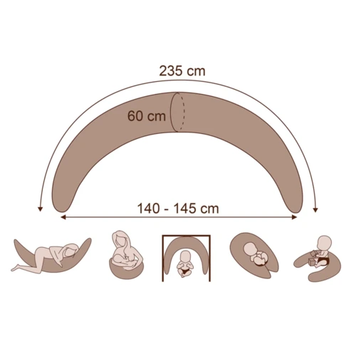 Hatékony segítséget nyújt a várandósság idején, lehetővé teszi, hogy a legkényelmesebb pozíciót tudja felvenni a kismama: alvásnál, pihenésnél megtámasztja a derekat, megemeli a combot, oldalt fekve alátámasztást biztosít a mama pocakjának.